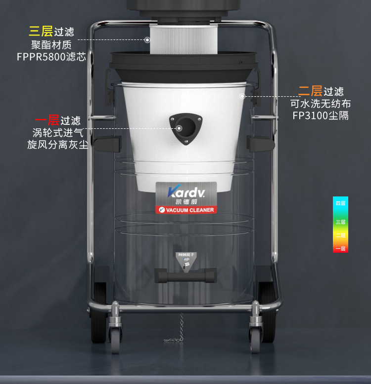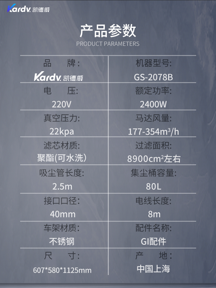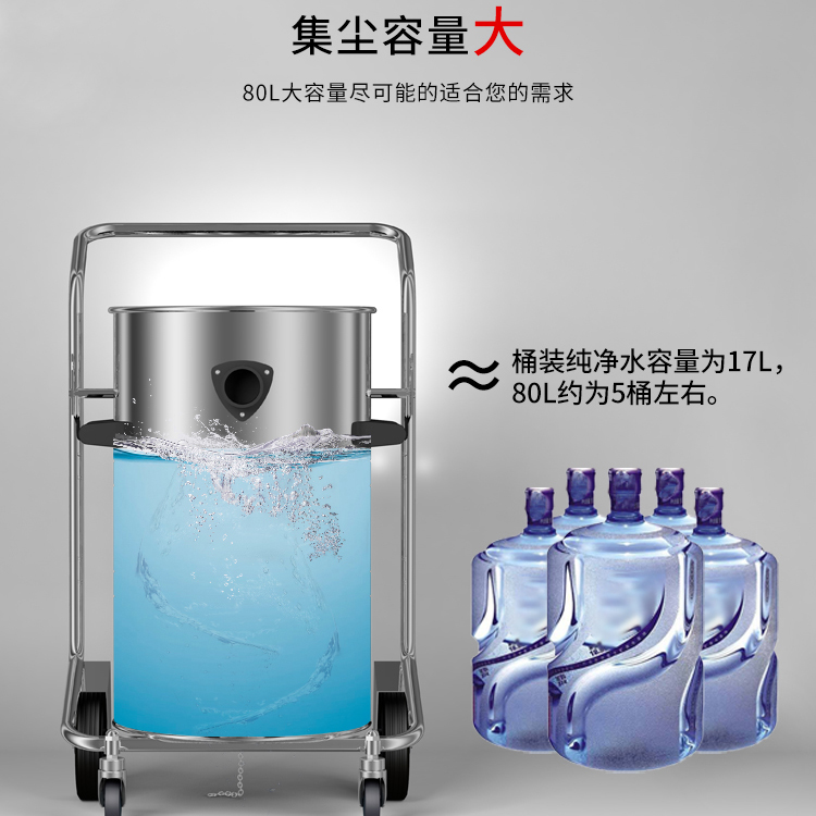 GS-2078B是一款工業(yè)型吸塵器,集塵桶為80L,為不銹鋼材質(zhì),配有不銹鋼車架,在移動時輕巧方便;可以用在工廠、倉庫或建筑工地等場所清理灰塵等,在商業(yè)環(huán)境中也可以使用。