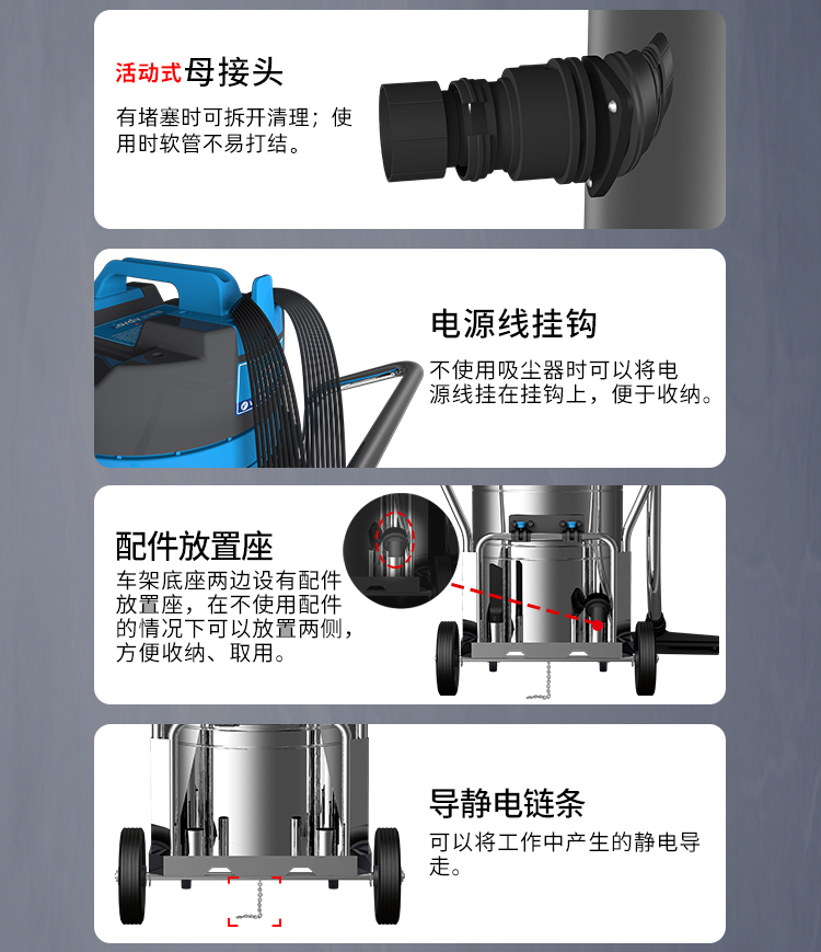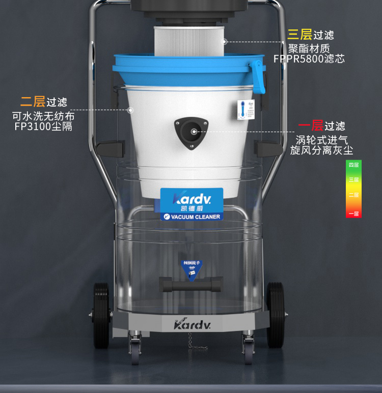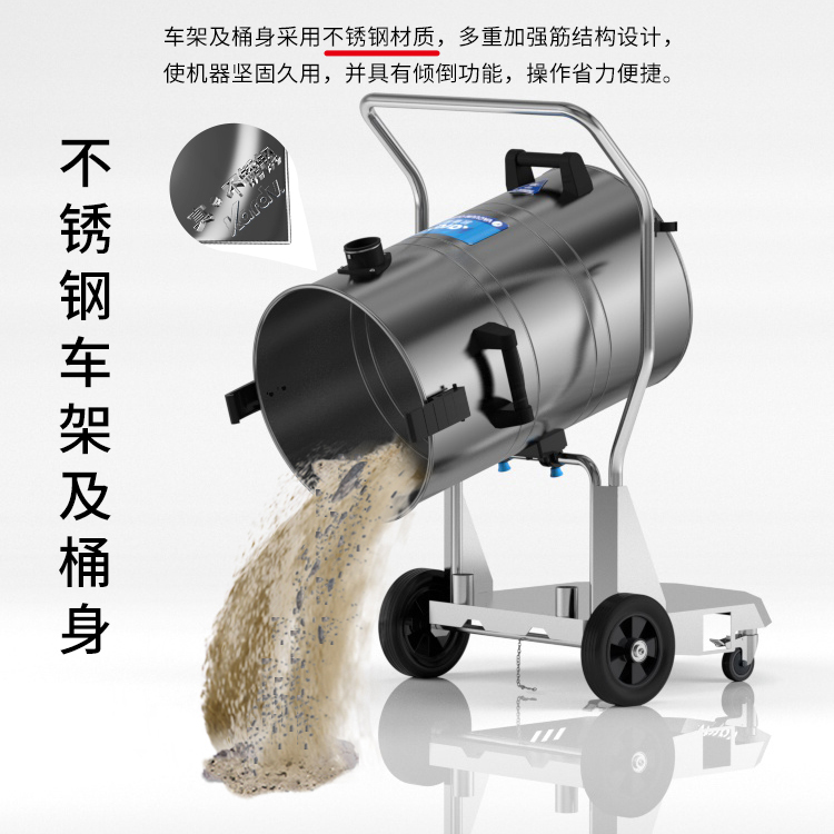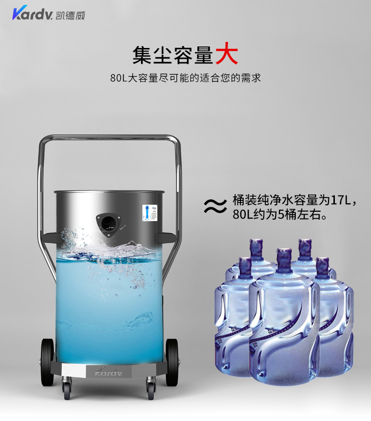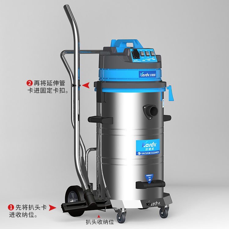 DL-3078B是一款工商業(yè)吸塵器,有3顆馬達,可單獨或聯(lián)合開啟;集塵桶為80L,為不銹鋼材質(zhì),配有不銹鋼車架,在移動時輕巧方便;配有手動晃動振塵,在使用的過程中,左右晃動振塵手柄就可以起到清理過濾器的作用;可以用在工廠、倉庫等場所清理灰塵等,在商業(yè)環(huán)境中也可以使用。