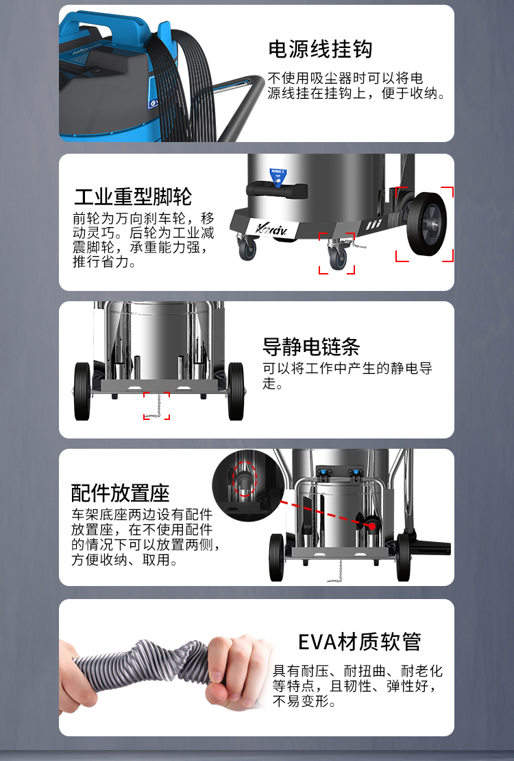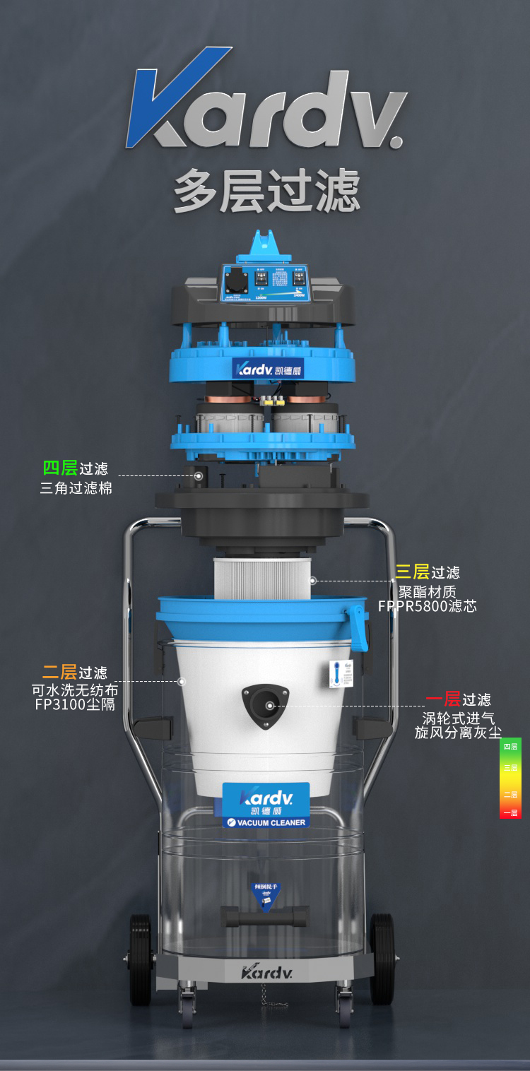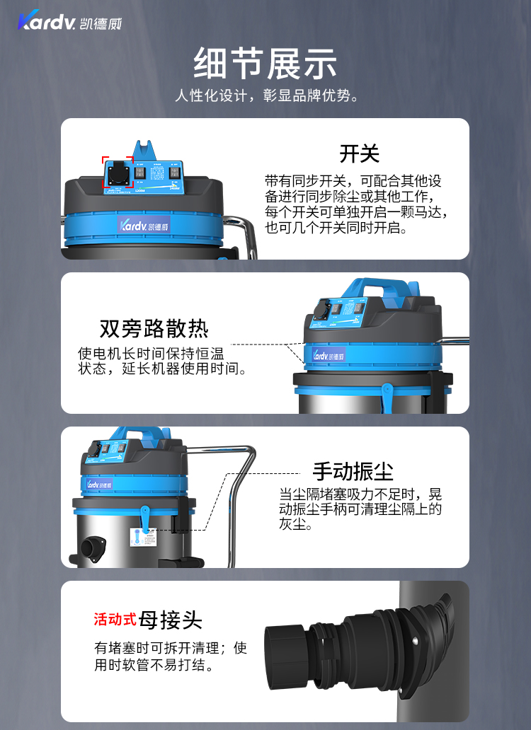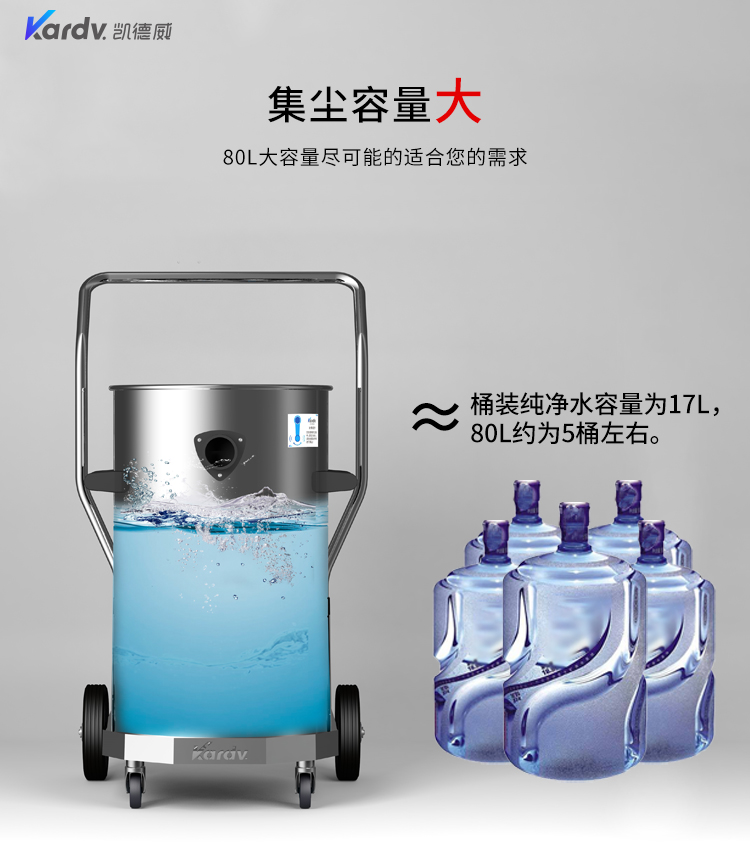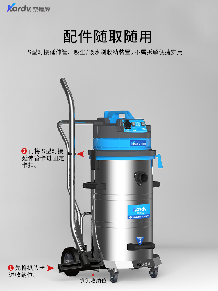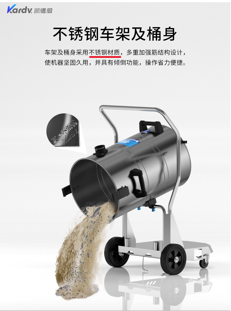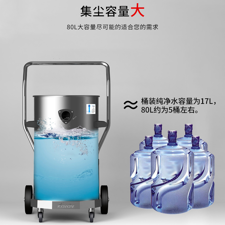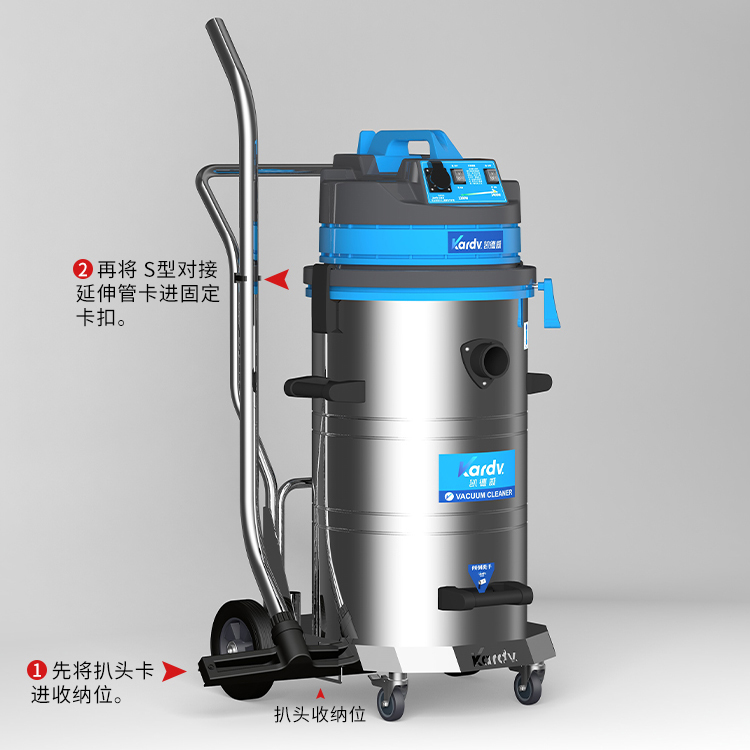 DL-2078B是一款工商業(yè)吸塵器,有2顆馬達(dá),可單獨(dú)或聯(lián)合開啟;集塵桶為80L,為不銹鋼材質(zhì),配有不銹鋼車架,在移動(dòng)時(shí)輕巧方便;配有手動(dòng)晃動(dòng)振塵,在使用的過程中,左右晃動(dòng)振塵手柄就可以起到清理過濾器的作用。新款不銹鋼車架,美觀結(jié)實(shí),具有收納配件功能,可以用在工廠、倉庫或建筑工地等場所清理灰塵等,在商業(yè)環(huán)境中也可以使用。