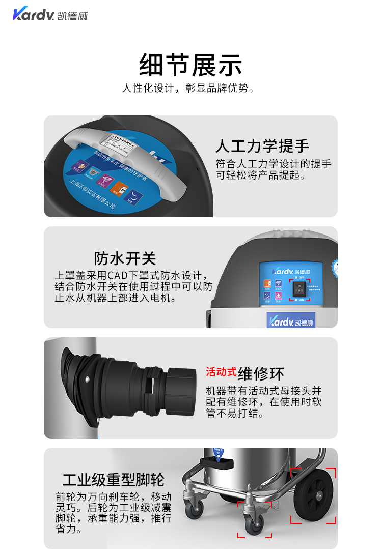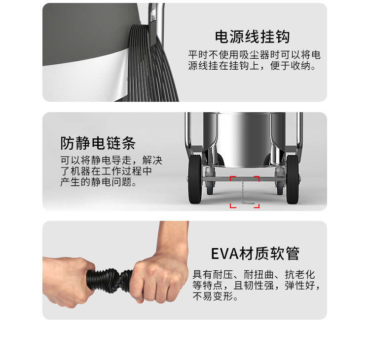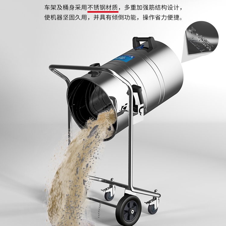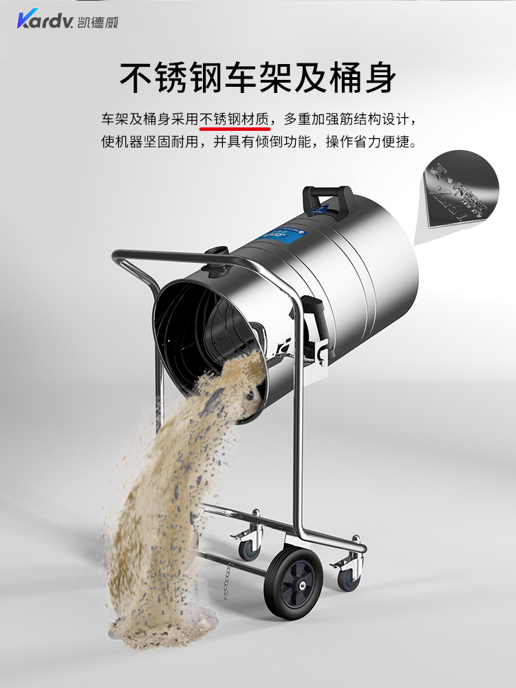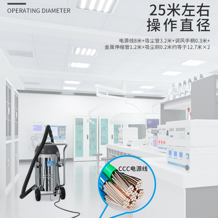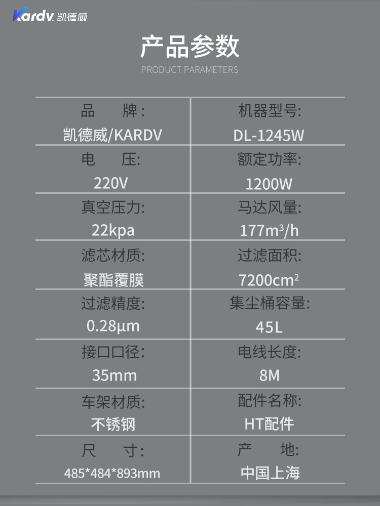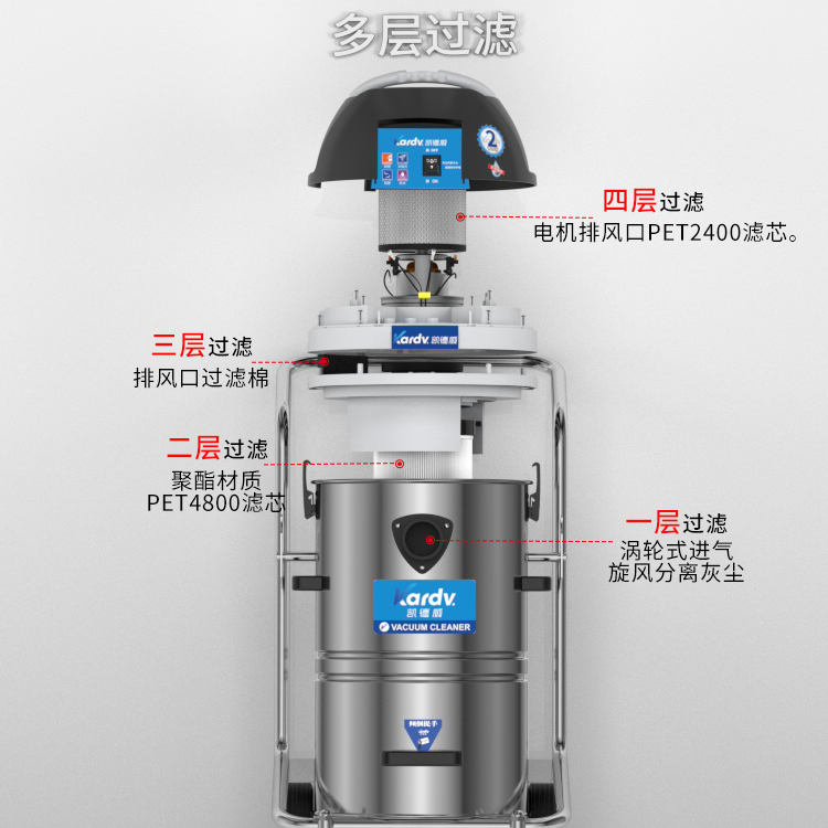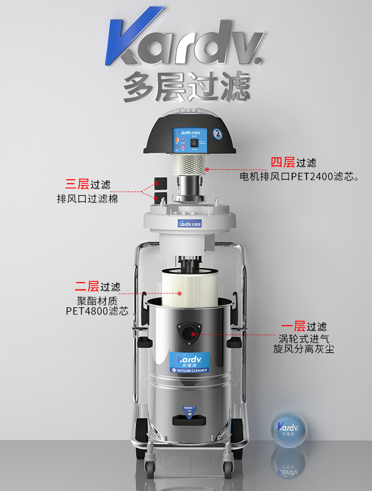 DL-1245W是一款工商業(yè)吸塵器,散熱上采用上下氣道分離,延長(zhǎng)了排風(fēng)的路徑及時(shí)間,所產(chǎn)生的聲音相對(duì)比普通的吸塵器聲音?。挥锌蛇_(dá)45L左右的不銹鋼材質(zhì)制成的集塵桶,同時(shí)它配有前輪為萬(wàn)向輪并帶剎車的不銹鋼車架使用起來(lái)靈活輕便;多層過(guò)濾裝置,使排出來(lái)的空氣相對(duì)潔凈;可參考使用在實(shí)驗(yàn)室,無(wú)塵車間,凈化車間等環(huán)境中。